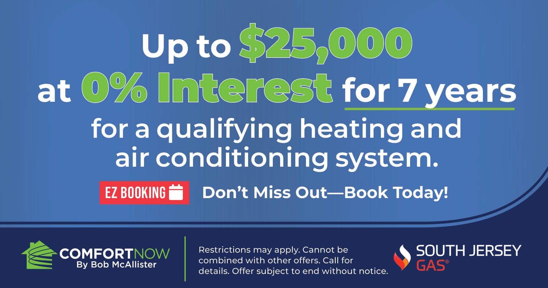Claim HVAC Specials from Comfort Now By Bob McAllister – Serving Atlantic City & South Jersey.